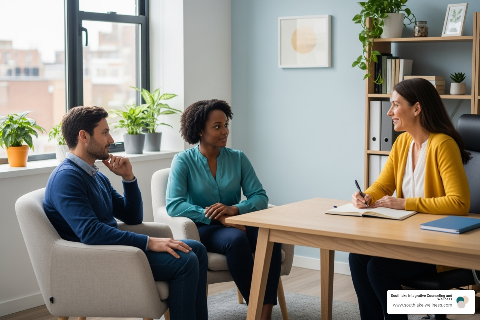 Therapist helping a happy couple at Psychiatrist Southlake Tx